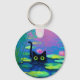 Funny Black Cat Swimming i Pond | Quirky Art Nyckelring