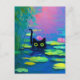 Funny Black Cat Swimming i Pond | Quirky Art Vykort
