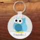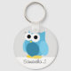 Nyckelkedja för tyst anpassningsbar med en illustration av ett blått uggla och personlig med ditt namn eller text. Underbar för uggla älskare, som gåva, eller som party favors vid en babydusch.