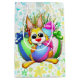 Funny and Cute Easter Bunny Cartoon Character biting a decorated Egg. Original Digital Art Copyright BluedarkArt.