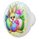 Funny and Cute Easter Bunny Cartoon Character biting a decorated Egg. Original Digital Art Copyright BluedarkArt.