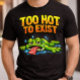Featuring a hilariously exhausted, melted frog and the bold phrase “Too Hot To Exist”, this design perfectly captures that universal overheated, low-energy, zero-motivation mood.