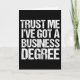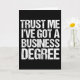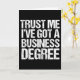 Lita på mig, jag har har en examen. Ett studenten humor-kort för att säga grattisar till ett student som förtjänade en chefsadministration från ett kollegium eller universiteten. Ett lustigt citat från en affärsman, affärskvinna eller affärsman.
