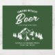 En humoristisk campingplatta med flaska-märket med bachelorette som innehåller ett teckning på en campingplats med berg, träd, en loggbrand, ett tält, det roliga ordspråket "camping utan öl, är bara sitta i skogen" och en redigerbar textmall.