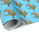A funny capybara on wrapping paper. A simple no text version of my original capybara cartoon in a repeat pattern on a bright blue background. A rhythmic gymnast in a leotard holding an orange hula hoop.
