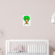 Cute funny cartoon tree with green leaves, a brown trunk, a happy smile and big round eyes. Below is a template to add your own text.