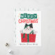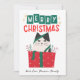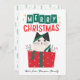 Holiday design features a funny cat inside a present, getting into mischief. It's a meowy Christmas! Flip card over and personalize it with a family photo and change default text to fit your unique needs. Minimalist watercolor pine trees fill the card to complete the holiday vibe.