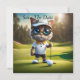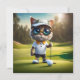 Bild som trycks i solskyddsglaset, Shirt, Shoes, Redot att spela golf är en fin, stor, färgad katt.