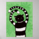 Lönsam katt poster med en digital illustration som skildrar en tecknad som är en vit och svart katt med märkligt böjt tass, grönt lämnar bakom den. Denna vår-utformning i roligt kommer att tilltala en galen katt dam och alla kattälskare där ute som tycker om lite sorg också.