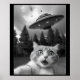 Funny Cat Selfie med UFO Alien Drones Poster