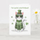 Den här lekande St. Patrick-Dag-kortet har en snyggt som är klädd i en mönstrad grönt, en tarm och en hatt med ett låsbeslag, omgiven av vibrerande schampar. Den roliga designen är fullt av charm och kattdjur, perfekt för att fira helgdag med en liten bit humor. Det inre budskapet kombinerar irländskt jublande med en kattblåst, skapar det ett unikt och roligt sätt att skicka önskemål till alla som kärlek katter eller har lite lätt roligt.