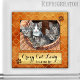 Fotopagnet med din egen favoritbild av katten som ramats in av en marockansk quatrefoil guld tryckt bakgrund med söt katt tass. Du kan ändra texterna i dina egna lustiga katttexter om du vill!