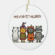 Fyra konstiga katter i Halloween-kostymer, ett spöke, häxa, pumpa och mamma- för en festlig prydnadsfigur som önskar mottagaren en purfekt Halloween. Underbar för kattälskare.