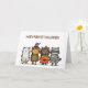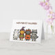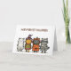 Fyra konstiga katter i Halloween-kostymer, ett spöke, häxa, pumpa och mamma- för ett festkort som önskar mottagaren en purfekt Halloween. Underbar för kattälskare. Insidan är tom så att du kan lägga till en egen text.
