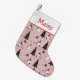 Lönsam julillustration av katter i tomten med små möss, fiskar och garn runt Julgranar. Skriv ut allt-över mönster a på rosans bakgrund.