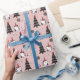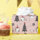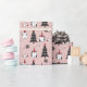 Lönsam julillustration av katter i tomten, med små möss, fisk och garn runt Julgranar. Allt-över-utskrift mönster på rosans bakgrund.