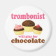 Den här humoristiska trombonistiska designen har en trio muffinsar och musikslogan som säger Trombone - Will Play for Chocolate.