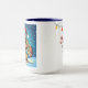 A funny Sasquatch personalized Christmas coffee mug with a comic book style pop art sasquatch smiling with a Santa and Christmas lights on.