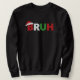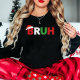 Say it all with one word: "BRUH." This funny, meme-inspired sweatshirt features the word in Christmas colors with a little Santa hat on the 'B.' It's the perfect sarcastic response to holiday stress, great for a teenager, Gen Z gift, or a hilarious, minimal Ugly Sweater party outfit!