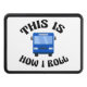 Den här roliga presenten för en chaufför i buss har en blå offentlig buss i superskojet "Det här är "Hur jag rullar". En coola popkulturreferens för en chaufför i buss som gillar modern humor. Spärrtäcke för släpvagn för förare.