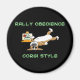 Lustigt Pembroke Welsh Corgi Rally Obedience t-shirts och presenter, med en underbar tecknad i mitten. Hund visas bredvid en orange-kon med tecknet "Ned". Han är nere på ryggen och mullnar som en gode. Texten lyder: "Rally Obedience - Corgi Stil". Underbar församling i humor för djurälskare inom denna hund idrott.