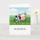 Ett sött och roligt tack som du ger ett kort med en ko i en betesmark som säger "moochas grassias"