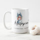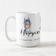 Funny Cute MInimalist Snowman Frosted Forest Christmas Coffee Mugs, with Happiest Holidays Quote. Personalized with Name.