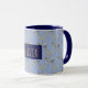 Anpassat namn Olivia, ynkligt Cute Faux Guld Reindeer Mönster på Elegant Blue Background Add Your Name or Text, Combo Mugg, Unikt julgift för barn i alla åldrar