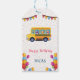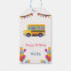 Funny dinosaur Back to school Buss-pojke Birthday Presentetikett