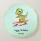 Funny dinosaur Skateboard Födelsedagsfest boys Rund Kudde