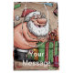 Ett humoristiskt och kvickt jultema som visar ett komiskt Jultomten i ett lekfullt och avslappnad undertryckstillstånd - med bara hatten i handen. Bakgrunden består i att upprepa det visuella inslag, t.ex. tomten på olika lekplatser och festföremål som inslagna presenter och älvar, alla inlagda mot en grönt baksida med snöflingor, stjärnor och juldekoration inslag.