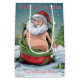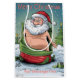 Ett humoristiskt och kvickt jultema som visar ett komiskt Jultomten i ett lekfullt och avslappnad undertryckstillstånd - med bara hatten i handen. Bakgrunden består i att upprepa det visuella inslag, t.ex. tomten på olika lekplatser och festföremål som inslagna presenter och älvar, alla inlagda mot en grönt baksida med snöflingor, stjärnor och juldekoration inslag.