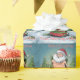 Ett humoristiskt och kvickt jultema som visar ett komiskt Jultomten i ett lekfullt och avslappnad undertryckstillstånd - med bara hatten i handen. Bakgrunden består i att upprepa det visuella inslag, t.ex. tomten på olika lekplatser och festföremål som inslagna presenter och älvar, alla inlagda mot en grönt baksida med snöflingor, stjärnor och juldekoration inslag.