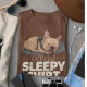The playful “Sleepy Shirt” text adds a lighthearted touch that makes the design stand out without being overwhelming.