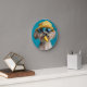 This unique design features a charming dog wearing sunglasses and a summer straw hat. The clock combines a fun and relaxed vibe, making it a standout piece in any room. Perfect for dog lovers and those who enjoy adding a touch of humor to their decor. High-quality digital illustration that brightens up any space.