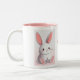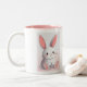 Funny Easter Bunny Image (generative content) on a special white and pink two tones mug. On the other side, humor text in a funny form, saying "Have a Happy Easter Egg Hunt!"