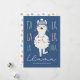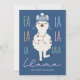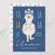 Julkortet "Fa La La La La La Llama" har ett sött lama på vinterhatt och jultid på ljus på en marin blå bakgrund med "Ull Navidad" Julhälsningar och pastellpolka mönster på motsatt sida. Art av KL Lagrar.