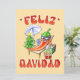 En konstnärlig Feliz Navidad-design till jul i juli eller december. För manar, kvinnor, flickor och pojkar i Spanien eller Mexiko eller på någon av Hispanic Julafton party. En rolig, söt tecknade figurer av en röd jalapeño-peppar kylar ut på en strandloger.