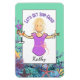 This funny and colorful female cartoon magnet is perfect for your door as you cruise or relax on a beach vacation. The bright colors of tropical coral and starfish is so fun! You can customize this magnet with your name and message