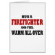 Lustigt Hug är en brandman och känner sig varm över t skjortor och presenter.