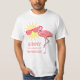 Lustigt Flamingo Beach Weather Forecast T-Shirt säger Sunny med en chans att flamingos. Rosa flamingo står under en sol ansikte som bär shock rosa solglasögon. Sommarstranden och bassäng bära.