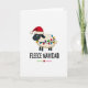 The sheep's face is dark with big, kind eyes, making it seem very warm and inviting. Below the sheep is the words "FLEECE NAVIDAD" in bold black letters, a funny play on words mixing the sheep's fluffy coat with a festive greeting. There are also a few colored dots and lines underneath, matching the Christmas colors. Overall, the design is simple and playful, perfect for sending cheerful holiday wishes to friends and family. It's a great way to spread some holiday joy! 🎅🏼🎄🎁