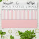 Kreativet "Sten, Rattle and Roll" duschar dekorativ handduk från flicka med rosa rand och silver baby leksak.