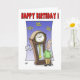Ett roligt födelsedagskort i Tecknad för en gammal kille som står bredvid en klocka med en känsla av oro och ord Grattis på födelsedagen på framsidan. Insidan av kortet står "Bra News! Tiden är fortfarande på din sida.. Hoppas att du har en underbar dag!"