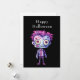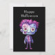 Happy halloween-kort med en söt illustration. Frankensteinmonstret med rosa och lila hår och kostym och slips.