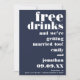 En rolig typografisk design för dina gäster i inbjudan till sparan av din bröllop-dejt. Helt anpassade. Typografin är helt i linje med högerna, med vit typografi överst, fri dryck, följt av Och vi är också i vitt, med namn, bröllop datum och plats i en blandning av guld och vitt. En marin och vit rand-bakgrund är på baksidan.