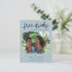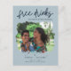 De här sparar datumkorten för det roligt paret som inte kan vänta med att sitt bröllop-datum med sin familj och sina vänner. Den moderna fotodesignen "Lediga drycker (och vi är gifta sig) i blått anpassas med fotot, namn, datum och plats för bröllop. Lägg till information om returadress och bröllop på baksidan av vykortet.