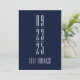 Lustigt blått och vitt Spara datumkortet med stort nummerdatum och gratis dryck på framsidan och Oj, och vid sidan om, vi är Gifta sig! på baksidan. Anpassa med namn i skript och stad, stat och speciella bröllop-datum för att se till att folk är redo att fira med dig!