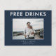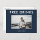 Spara datumvykorten för det roligt paret som inte kan vänta med att sitt bröllop-datum med sin familj och sina vänner. Den moderna fotodesignen "Lediga drycker (och vi är gifta sig) i marinblått och vitt anpassas med foton, namn, datum och plats för bröllop. Lägg till information om returadress och bröllop på baksidan av vykortet.