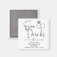 Få dina gäster upphetsade för din stora dag med vår lekande "Lustigt gratis drinkar" Photo Bröllop spara datum magnet! Den här 2 x 2-tumsmagneten har en elegant svart och vit design som accentueras av ett klassiskt motiv för bröllop ring som symboliserar kärlek som du ska fira. Anpassa den med information om bröllop. Knappen "Free Drinks" lägger till en roligt som säkert ger dina gästers ansikte ett leende. Det är perfektens väg att nyheterna och ge dem något att se fram emot! Håll den på kylen, och det blir en daglig påminnelse om de kommande festligheterna - plus, vem kan säga nej till gratis drycker?